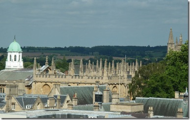 We had some lunch and headed off into the city, which we have not visited before. We headed for the tourist information centre to buy the guide which has a useful map, and then up the Carfax Tower. We had a guess at what we saw, trying to ignore the air-con units on the roofs nearby. We reckon this is Brasenose with its knobbly pointy bits;